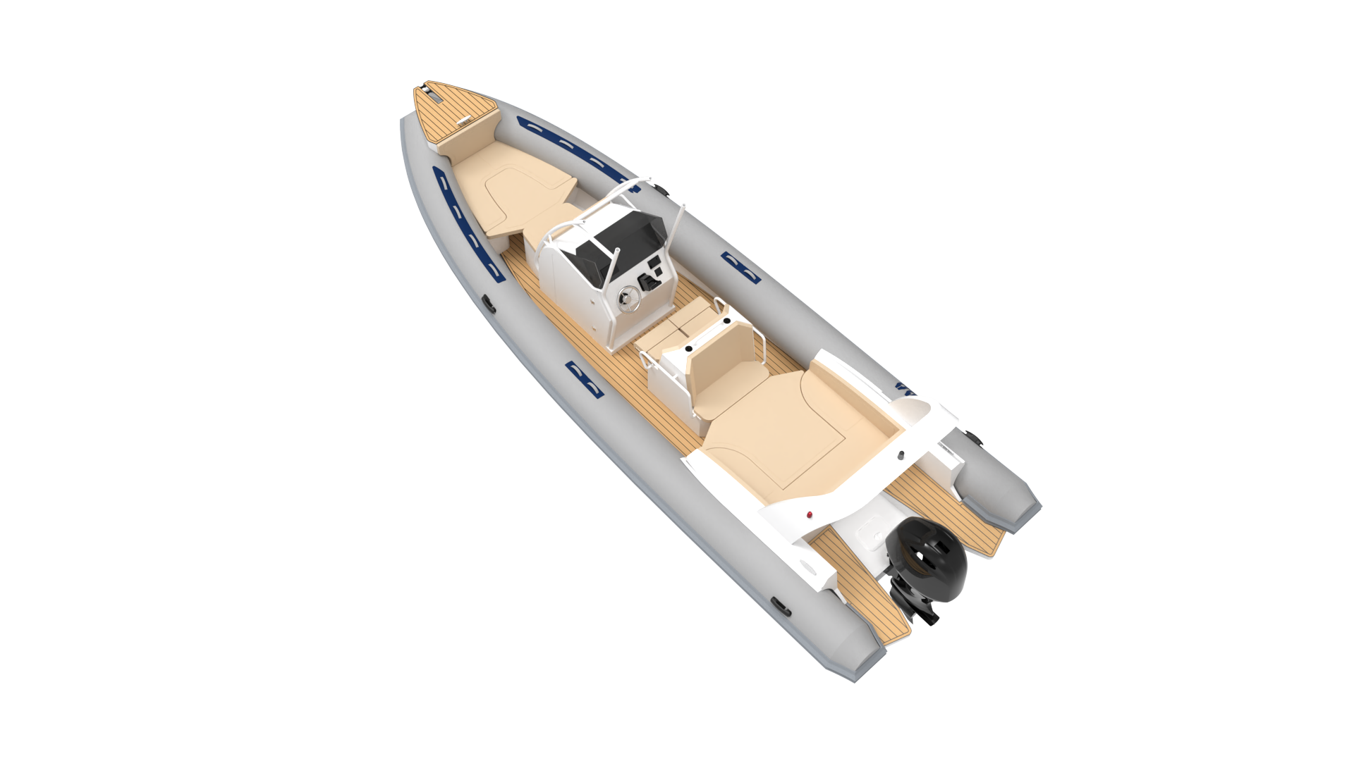 - Destaca por: Gran solarium en proa y popa, T-Top de aluminio de serie, amplio espacio interior, máxima estabilidad.